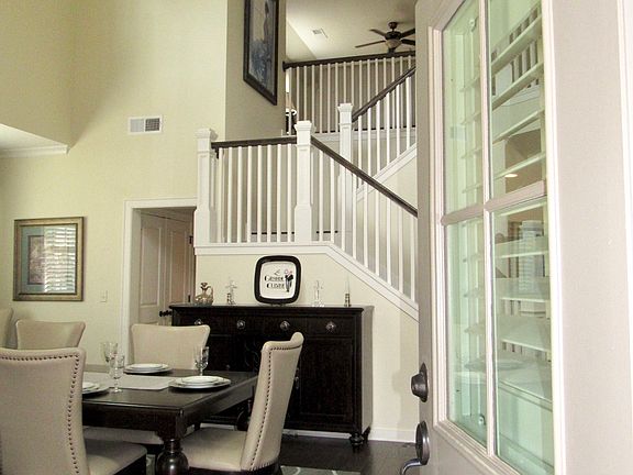 Like new, beautiful brick home in The Village at Highland Lakes, Regent Park. This home has it all! Great covered porch with pretty arches. As soon as you open the front door you will see gleaming hardwoods, 2 story dining room and a beautiful staircase. Unbelievable kitchen with granite counter tops, stainless appliances, an amazing island and tons of cabinet space. There is also a butler's pantry off the kitchen as well as a regular pantry. Family room has a vaulted ceiling and fireplace. Master is on the main along with an additional bedroom and bath. Upstairs you will find 2 additional bedrooms along with an office, (could be a 5th bedroom) and another living area. Security system, wired for surround sound and recently painted with neutral colors. The spacious backyard is fenced with a large covered patio and a pergola. Community pool, parks and playgrounds.