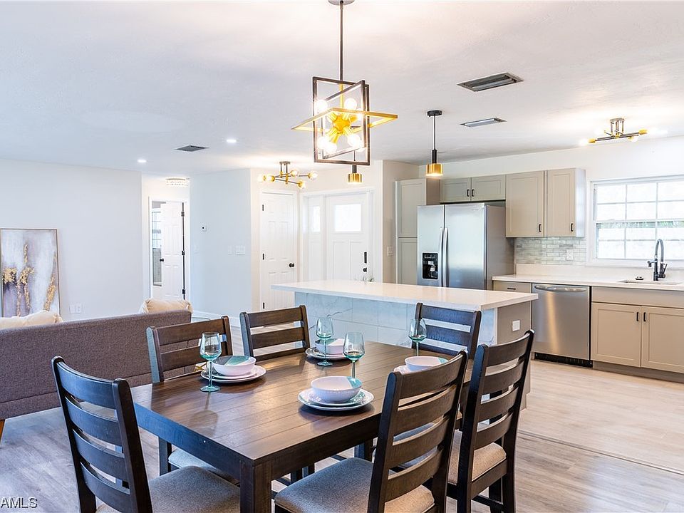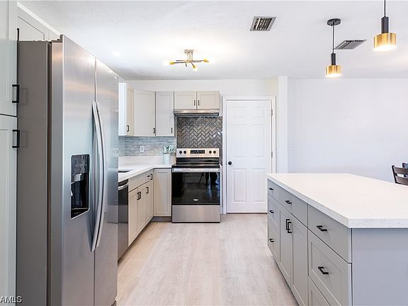 Move in Ready| Everything NEW| Perfect Location! NO FLOOD Insurance needed in the past. This amazing single-family home offers a spacious 3 bedrooms, 2 bathrooms, fenced in Yard, OPEN spacious kitchen to the living area making it the perfect space for families, snowbirds or those who love to entertain. Kitchen offers NEW stainless steel appliances and NEW Quartz Countertops. Everything in this home is COMPLETELY UPDATED in 2022 including the brand new ROOF. PRIME LOCATION for all your shopping, dining, schools & community giving a sense of belonging. Don't miss out on the opportunity to own this beautiful home in one of the most desirable areas of Cape Coral. You won't want to miss out on this one, come and see for yourself! One year home warranty offered at closing.