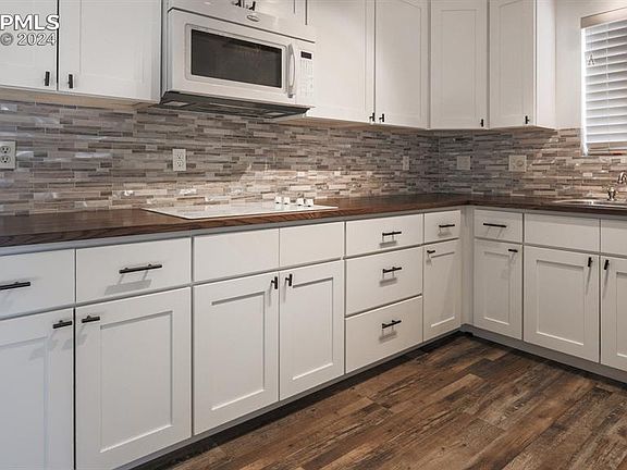 This beautifully remodeled ranch home is the epitome of comfort and coziness! Open and bright living area w/ newer carpet, a fireplace, updated light fixture & two large windows to let the sunshine in! One window facing west providing amazing mountain views of Pikes Peak! Remodeled kitchen boasting luxury vinyl plank flooring, newer white cabinets, modern backsplash, butcher block counters, updated light fixtures & a cooktop. Just off of the kitchen is the dining room also boasting LVP flooring, more cabinet storage and walk-out access to the backyard. Two bedrooms located on the main level to include the primary. A full, remodeled bathroom completes the main level. A spacious family room, two additional bedrooms, a full remodeled bathroom and the laundry room are located in the basement, yes the washer and dryer are included. Any mechanic or hobby person will enjoy the oversized, insulated and sheet rocked, detached garage (672 sqft) with additional outlets for the tools and don't miss the pull-down staircase that provides access to the attic for for additional storage. Vehicles enter from the paved alley. The back yard features a 27' x 14' covered concrete patio, perfect for entertaining, fully fenced and a grassy area watered by the sprinkler system for the kids or dogs! Nestled in a centrally located, peaceful neighborhood. This home is in close proximity to the Olympic Training Center, Memorial Hospital, major public transportation routes, D-11 schools, shopping and is only 7 minutes from downtown.