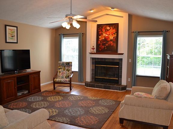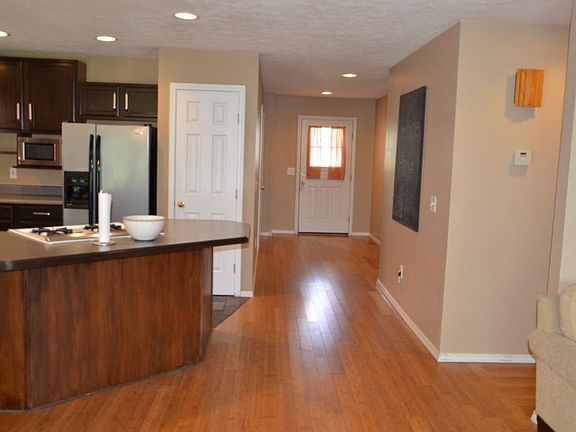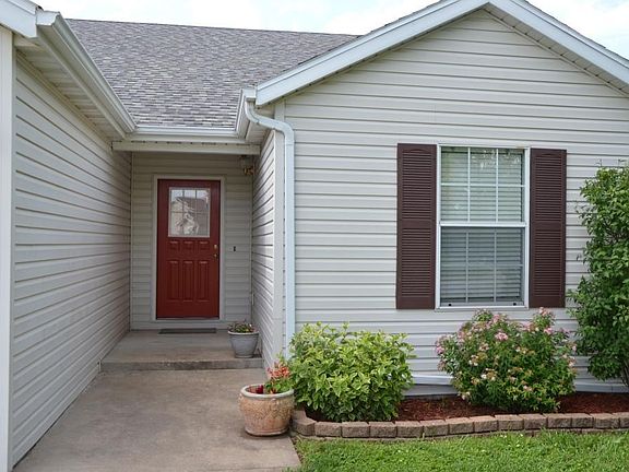 So much to love about this charming home in Nixa's Forest Park. An open floor plan features living, dining and kitchen all open to each other. Bamboo wood flooring encompasses the living and dining room. The kitchen has slate tile flooring, stainless steel dishwasher and refrigerator, dark stained cabinetry, island w/ bar and pantry. The three bedrooms have the split plan and all new carpeting. Other updates include newer light fixtures, new roof in 2007 with architectural shingles, HVAC in 2010, and garage door opener in 2012. The garage is extra deep ( 26') and has built in shelving. In back is a deck and privacy fenced yard which backs to a common area/green space. You'll also enjoy the subdivision pool.