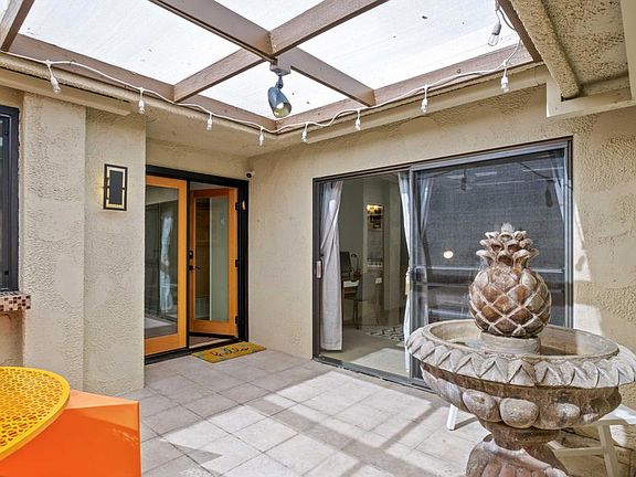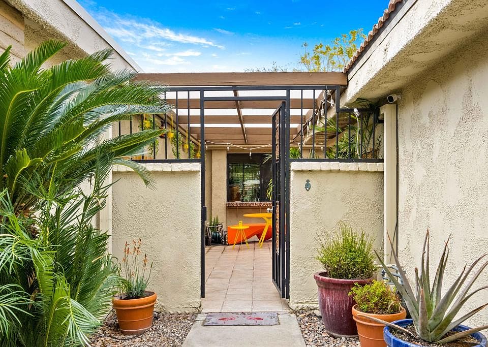 Welcome to Sunrise East. This gorgeous 2 Bed/2Bath condo boasts updated bathrooms, and decorator touches in the kitchen, primary bedroom, living and dining rooms. The fabulous courtyard entry is perfect for enjoying morning coffee and afternoon cocktails. With gorgeous mountain views the private back patio is great for grilling and enjoying the privacy of a lush greenbelt. Centrally located in South Palm Springs, your shoulders will drop an inch when you leave the excitement of downtown, enter this sought after gated community and relax by one of the six pools, or work up a sweat on the tennis or pickleball courts. A great opportunity to own on fee simple land (land you own) in a wonderful community.