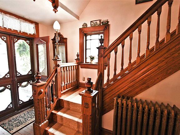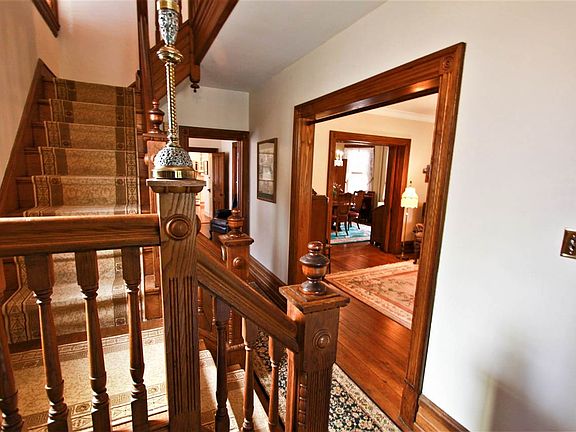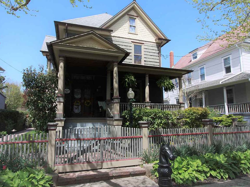 Beautifully maintained Victorian both inside and out, located on Historic Tree-lined Washington Street. This spectacular 4 BR/2 BA home boasts many period elements throughout coupled with many tasteful updates. The property features a spacious southerly facing front porch overlooking the meticulous landscaping. Beyond the dramatic entry is the formal living room with crown molding and original pocket doors highlighted by the original door and window casings. The living room flows to the formal dining room and into the updated kitchen with timeless Kraftmaid cabinetry, granite counter-tops, and stainless steel appliances. The kitchen also features a breakfast nook with custom tin ceiling and crown molding. Additionally level one offers an updated full bathroom as well as a den, also with original pocket doors. Level two features the Master Bedroom with a spacious closet; two additional guestrooms; a fourth bedroom that is currently being used as an office space; and a fully updated bathroom with tile surround. Additional interior upgrades include high velocity central air; upgraded electric with two new service panels; a multi-pure water filtration system; newer high efficiency washer and gas dryer, and a back up gas generator. Exterior features include a two tiered deck; paver walkway; irrigation and mature landscaping; a detached 1.5 car garage with power, new garage door, epoxy coated floor, and lofted storage space. The garage and off-street parking (2 plus garage space) is accessed off Golf Lane creating a very private rear yard.