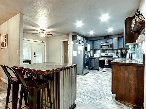 Escape to tranquility on 1.2 acres within the Choctaw-NP school district! This remodeled 3-bed, 2-bath haven welcomes you with open arms. The heart of the home, a spacious kitchen with concrete countertops, flows seamlessly into a formal dining space and a charming living room featuring exposed ceiling beams and a cozy stone wood-burning fireplace. Indulge in the comfort of the master suite with his and her closets, a double vanity with new sinks, and a walk-in shower with dual heads. The convenient office nook complements the layout.. Step into a beautiful backyard oasis complete with a covered patio and an above-ground pool surrounded by a deck—perfect for both entertaining and unwinding. Additional highlights include two storage buildings, one with electric, heat, and air, and a storm shelter for reassured safety. Fresh paint, major appliances under 5 years old, and a serene cul-de-sac location make this home an absolute must-see. Schedule your private showing today!