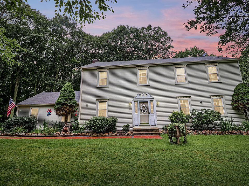 Welcome to 1023 Woodbury Road, a beautifully maintained colonial-style home nestled in the serene and sought-after area of Watertown. This spacious 4-bedroom, 2.5-bathroom residence offers the perfect blend of classic charm and modern convenience, all set on a lush, private lot surrounded by mature trees. Inside, you'll find cozy living spaces with large windows that invite natural light, creating a warm and welcoming atmosphere. The heart of the home is the elegant kitchen, a chef's dream featuring rich wood cabinetry, granite countertops, and stainless-steel appliances. Adjacent to the kitchen is a dining area that provides the perfect setting for family meals or entertaining guests. The home's primary suite is a true retreat, complete with a stylish en-suite bath, while three additional bedrooms offer plenty of space for family, guests, or a home office. Throughout the home, tasteful decor, including hardwood floors and contemporary light fixtures, blends style and comfort seamlessly. The exterior of the home is just as impressive, with an expansive backyard perfect for outdoor living. Whether it's summer barbecues, gardening, or simply unwinding in nature, this backyard offers endless possibilities. The spacious deck and additional patio are ideal for al fresco dining, with ample room for lounging and soaking up the tranquility of the surroundings. Relax near the Koi pond and soak it all in. The home's classic colonial exterior, complete with mature landscaping, adds to its charming curb appeal. Additional amenities include a convenient two-car garage with plenty of storage space. Situated in a peaceful neighborhood, 1023 Woodbury Road offers the best of both worlds-tranquil living with easy access to local shops, schools, and major highways. Don't miss the chance to make this charming colonial your new home. Come experience all that 1023 Woodbury Road has to offer.
