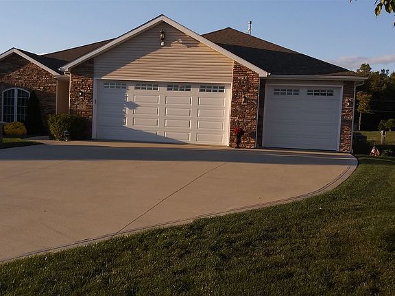 Sell your lawn mower and snow blower!5 yr old villaminium. Mowing and snow removal provided. Great curb appeal. Beautiful stone on exterior. Outstanding quality throughout. 3 BR home, 2 1/2 baths. 660 SF garage with oversized driveway. Full stairway in garage to attic. Automatic power vent in attic. Storage or workshop area in 3rd bay. Custom Kitchen cabinets with quartz countertops. Refrig, smooth top range, DW, microwave in kitchen remain. Four ceiling fans. Microwave is direct vented to the outside. Ceramic floors in living room and kitchen. 9' ceilings. Oak six panel interior doors. 6" foam insulated exterior walls. Speaker system through out .Natural gas hookup for BQ Grill on patio. *BONUS*: Enjoy the added security of having a Honeywell whole house generator! High Efficient AC and Furnace. Garage Cabinets included. 18 ' garage door. Garage floor drain. Gorgeous, luxury tile walk in master shower. TV in MBR will remain with wall bracket. LR TV does not remain, but seller will leave wall bracket above FP. (*EXCLUDED ITEMS*: garden fountain, flag pole, 2 freezers and refrig in garage, Ring Doorbell and SimpliSafe wireless security system, also Exclude two small shelves above bed in MBR.. EXCLUDED*)