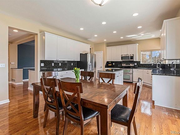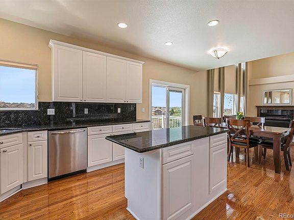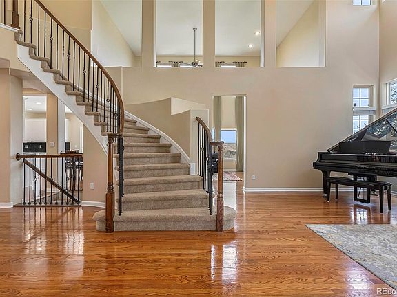 This is why you live in Colorado - to experience views like this home offers! Come see this nicely remodeled 6 bedroom, 5 bath, 4,963 SF, 2 story home on a quiet cul-de-sac on the east side of Highlands Ranch with unobstructed mountain views - even from the finished walk-out basement! The remodeled kitchen features white cabinets, slab granite counters, stainless steel appliances, a huge island, and eat-in space. From the moment you walk into the vaulted entry and see the grand staircase, the hardwood floors will lead you into the great room with 18’ ceilings and a gas fireplace, formal living and dining rooms, a study with built-in shelves, the laundry room, powder bath, and a mud room all on the main floor. Upstairs has the primary suite with five piece bath and walk-in closet, three more bedrooms, and two more bathrooms. The finished basement has a large rec. room with gas fireplace, two more bedrooms, and a 3/4 bath - oh and tons of storage! Have I mentioned that this home backs to an expansive open space with walking trails off in the distance and of course, mountain views for days?! Near parks, trails, shopping, dining, rec. centers, schools and entertainment - this home has everything you’ve been looking for! Come see it today!