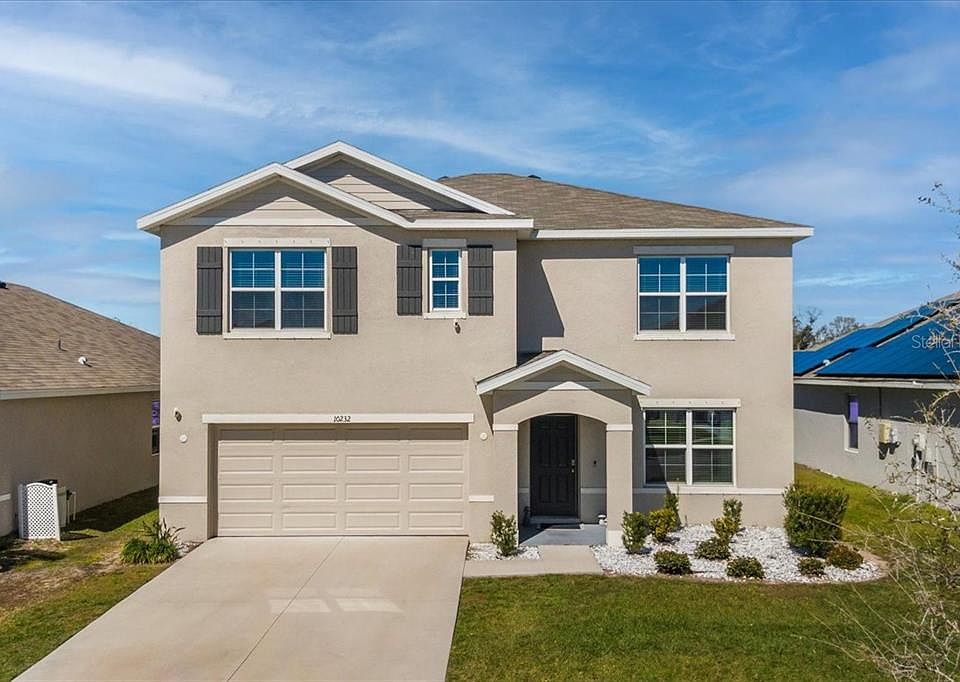 This stunning two-story home features a total of 5 bedrooms, 3 bathrooms and a Den thoughtfully designed to offer both functionality and style. The kitchen is equipped with a stainless-steel Range, Refrigerator, Microwave, and Built-in dishwasher, as well as a center island. Upstairs, you'll find newly upgraded flooring, with beautiful laminate that adds an extra touch of elegance. This House is Block to Block build by DR Horton in 2021 Model Hyden. Located in Triple Creek, this home offers access to a range of amenities, including multiple resort-style pools, a splash pad, a clubhouse, a fitness center, tennis and basketball courts, a dog park, walking trails, and numerous playgrounds. If you're looking for convenience, this home's location has got you covered. Just minutes from US-301, I-75, and the Selmon Expressway, it's an easy commute to Tampa. You'll also find everything you need nearby, including shopping, restaurants, grocery stores, entertainment options like cinemas and bowling alleys, the YMCA, and a range of healthcare facilities, such as St. Joseph Hospital, Amazon and Home Depot Warehouse, and a NEW Advent Health Hospital. **All measurements are approximate; the buyer is responsible to verify accuracy. **