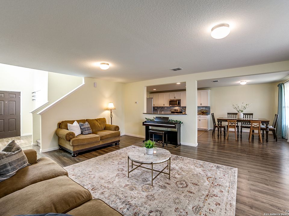THIS IS THE ONE!!! Priced to SELL this gently lived in home built in 2020 has been nicely upgraded and is practically new! This beauty has been meticulously cared for and well maintained. Upon entering the home you immediately notice an abundance of natural light from many large windows, and gorgeous wood laminate flooring as well as a stone accented wood burning fireplace. The eat-in kitchen with attached dining space boasts beautiful white cabinets, solid granite countertops and stainless steel appliances. The open floor plan is great for bringing families together or entertaining! Did I mention the super cute nicely upgraded half bath is downstairs too?! All 3 bedrooms and 2 full bathrooms are upstairs, including the owners suite which offers double vanity sinks in the bathroom and a spacious walk-in closet. Upstairs also offers a nicely appointed utility room and a loft that can be utilized as a playroom, office or game room! The backyard is level with an enclosed fence and covered patio with upgraded flagstone to enjoy the outdoors! Did I mention that the home has solar panels?! Not only do you get to enjoy living comfortably in this home but you can do it while saving on your energy costs! Another BONUS is that the washer and dryer and refrigerator convey with the sale of the home!! This lovely neighborhood offers a park/playground area! Amazing location with easy access to Loop 1604, shopping, restaurants, the Medical Center and UTSA! Zoned to Northside ISD schools. This one is a FANTASTIC price for over 1800 sq. ft. of living space and its location!