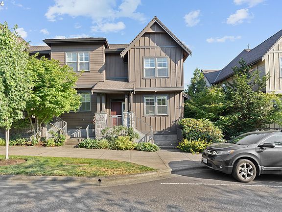 Welcome to an exceptional corner unit townhouse in Peterkort Woods, offering modern comfort and convenience in a highly desirable neighborhood. As you step inside, you'll be greeted by an open floorplan that seamlessly connects the great room and dining areas, featuring hardwood floors, a cozy fireplace, and custom built-ins. The beautiful kitchen, perfect for cooking and entertaining, boasts granite countertops and stainless-steel appliances. Adjacent to the dining area, sliding doors lead to a charming deck, providing a delightful space for morning coffee or evening relaxation. Upstairs, you'll find three well-appointed bedrooms, including a spacious primary suite complete with a walk-in closet, ensuring ample storage and comfort. The versatile lower level features a family/bonus room that can easily transform into an office, gym, or entertainment space to suit your needs. This home includes a newer furnace and A/C system to keep you comfortable year-round, along with a newer water heater for added peace of mind. The spacious 2-car garage offers plenty of room for vehicles, bikes, and additional storage. HOA amenities includes a community pool, clubhouse, walking trails, beautifully landscaped grounds, and more. With easy access to major employers like Nike and Intel, top-rated schools, parks, and a variety of dining and shopping options nearby, this townhouse offers the ideal blend of comfort and convenience.