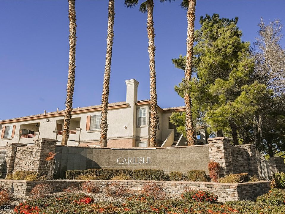 Don't miss this opportunity to own a highly upgraded corner unit condo in the Carlisle at Summerlin. This 2nd floor condo features an open floor plan with vaulted ceilings. The kitchen has upgraded cabinets, stainless steel appliances, granite counters and opens to the great room. The primary bedroom has a walkout patio and large walk-in closet. This community is gated, has well manicured landscaping and resort style amenities. This condo has a detached garage and an additional, assigned parking space. This home will not disappoint.