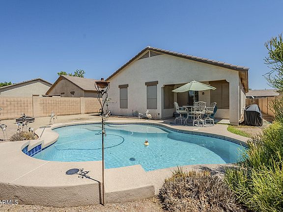 This well kept property in Tolleson with newer AC, water heater and new pool equipment offers comfort, style, and plenty of space for your family to enjoy. Three comfortable bedrooms and two full bathrooms, along with a versatile den that can be used as an office, playroom, or guest room. Enjoy added privacy with a thoughtfully designed split floorplan, separating the primary suite from the other bedrooms. Host gatherings and entertain guests in the elegant formal living and dining areas. The kitchen features an island, ideal for meal prep, or serving up snacks during get-togethers. The family room offers the perfect spot for movie nights or relaxing with loved ones. Step outside to your private backyard oasis, complete with a sparkling swimming pool with a four color digital remote controlled light -perfect for cooling off on warm Arizona days and outdoor fun. The roof has been recently inspected. This Tolleson home is ready for you to move in and make it your own.