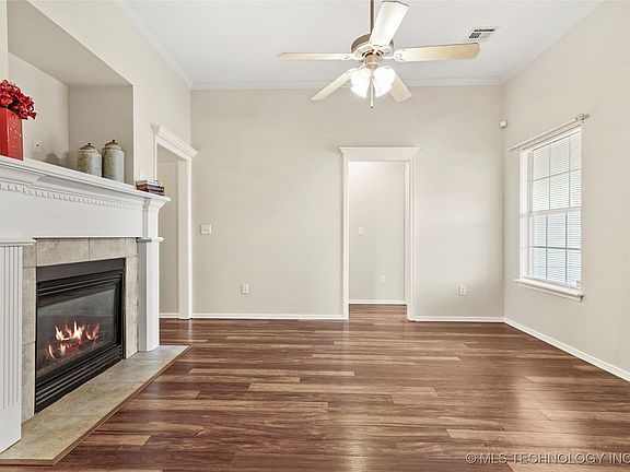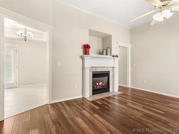 Ready for you! Beautifully maintained home in the heart of Owasso and Bailey Elementary School close by! Large corner lot! Two car side entry garage with EOHD. Wood laminate floors in living and all bedrooms. Tile in bathrooms, kitchen, dining area and laundry. Water heater replaced 2/28/20, new roof 9/20/24 (class 3 shingles may garner reduced insurance rate). New exterior paint 12/10/24. Large primary bedroom with large walk-in closet, ensuite containing double sink vanity, whirlpool tub and separate toilet and shower area. Owned security system currently monitored (ADT). Full privacy fenced back yard and covered patio! So sparkly clean and so inviting! Better hurry for this one!
