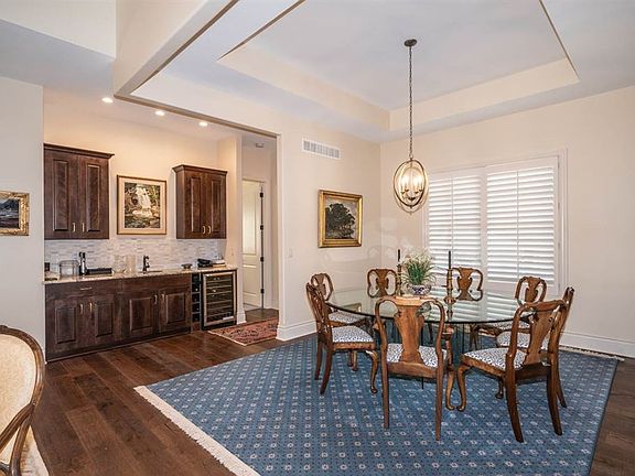 Your dream home awaits in this custom built ranch that backs to the trees and features a great open floor plan for easy entertaining, lovely living room with gas fireplace, hardwood floors, coffered ceiling, recessed lighting, built-in bookcases, and dual sliding glass doors to bring the outside in, formal and informal dining areas, granite wet bar, gorgeous granite kitchen with island with breakfast bar, range hood, soft close drawers, pull-out shelving in the cabinets, trash drawer, Bosch and KitchenAid appliances, and walk-in pantry with microwave nook. The laundry room is conveniently located on the main floor and includes tile flooring, sink, counter, extra cabinet space, hanging rod, and recessed lighting. Built-in mud bench. Spend peaceful nights in this inviting master suite complete with carpeting, trayed ceiling, built-in speakers, plantation shutters, access to the sunroom or office with tile flooring, sliding glass door to the covered patio, fireplace, and vaulted ceiling, and private spa-like bathroom with tile flooring, under cabinet lighting, his and her sinks, his and her walk-in closets, private commode, soaker tub, and tile shower. The lower level is the perfect space to just hang out and features a huge family room with carpeting, recessed lighting, 9 foot high ceilings, and granite wet bar! This lower level also features two spacious bedrooms, a full bathroom, ample storage space, and a potential bonus room! You will love spending you evenings out in this gorgeous backyard complete with covered patio with remote control screen and fireplace, an additional patio area, lush landscaping, and backs to the trees which makes this home extremely private!