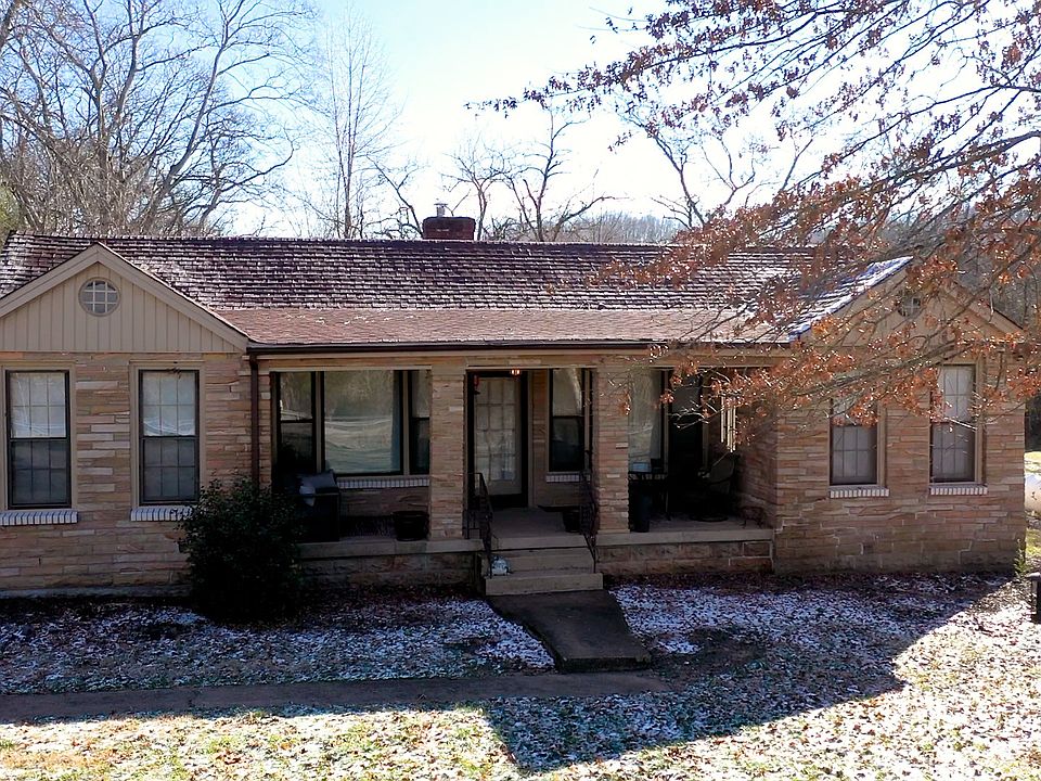 Beautifully updated home and 5 acres with so much character! Original hardwood floors in great room*Fireplace w/new gas logs*Roof, Carpet in Bedrooms, Water heater, and ductwork installed in 2018*Dishwasher installed in 2019*New HVAC unit in Feb 2021*Dining Room has a beautiful wall of windows*Large kitchen w/stainless appliances*Privacy galore on this property with mature trees*Creek on property on the right*Detached garage is the older type with wooden swing open doors and is wired*Newer detached shop that can be easily converted back to a garage*Covered front porch is a great place to relax*Circular drive*