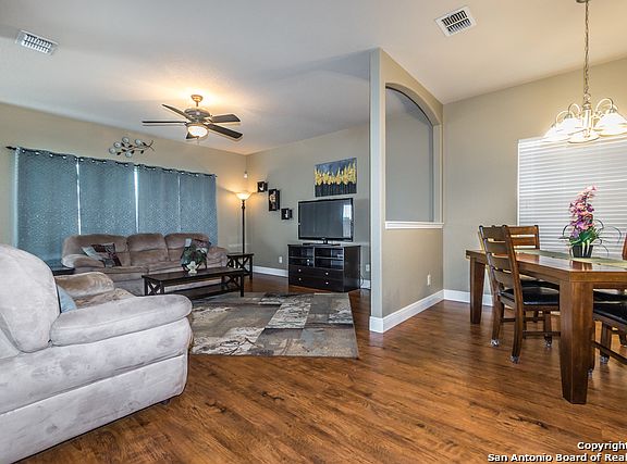 Beautiful Laurel Canyon two story features 4 bedrooms & game room up, 2.5 baths & 2 car attached garage, mature trees & backs up to greenbelt for added privacy. Interior features include high ceilings, laminate flooring throughout living & dining areas & ceramic tile in kitchen & baths. Eat-in kitchen w/center island work space, plenty of storage in cabinets w/crown molding. Large family room opens to kitchen, breakfast area & formal dining. Large utility w/built-in storage shelves. Oversize patio slab!!