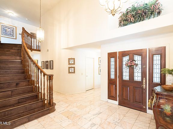 This gorgeous five-bedroom, four-bedroom home is now available! A unique opportunity to own a beautiful piece of real estate with special features and details, you won't want to pass this home up! As soon as you enter, you will be welcomed with a beautiful foyer including marbled tiles and a grand staircase that spirals to the upstairs space. Downstairs you will also find two rooms, which can be used as bedrooms or bonus space, and a formal dining and living room. The kitchen is a dream with decadent flooring and rich cabinets, new appliances, gorgeous, dark marbled countertops, and of course, the minibar area with a separate sink and mini drink fridge cooler. The home gets even better as you make your way upstairs. With three more spacious rooms on the top floor, including the master suite, this home offers plenty of space for your family to grow. The massive master suite features a beautiful fireplace accented by the floor-to-ceiling stoned wall. In the master bathroom, you'll find a gorgeous soaking tub, built-in vanity space, walk-in closet, and jack and jill sinks. In addition, the room offers views of your very own pool with its waterfall and tennis court. Speaking of the backyard, you will also find fruit trees, a jacuzzi, and a small custom-built barn. With so much to offer inside and out, this home is not one you want to miss. See it today before it's gone!