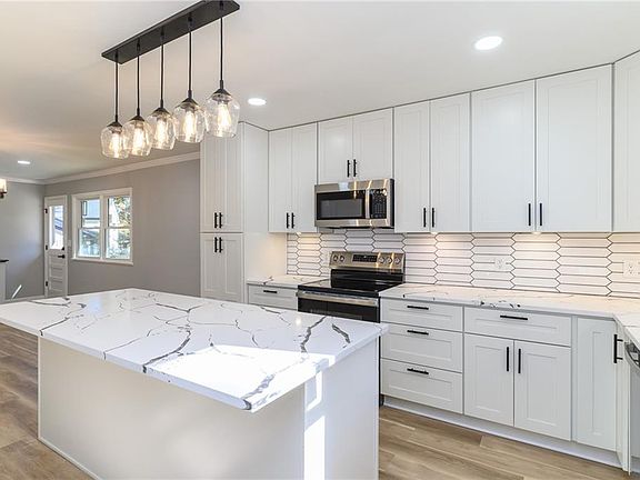 Updated!! 4-bedroom, 3-bath ranch—just in time for the holidays! Featuring a brand-new kitchen with custom cabinets, quartz countertops, and stainless steel appliances. This home offers all new windows, a new roof, hardwood floors, and first-floor laundry for added convenience. The spacious master suite includes a large walk-in closet. Enjoy outdoor living on the large deck with all-new flooring, or in the finished walk-out basement—perfect for entertaining or extra living space. Great location with easy access to I-35 to the east and I-435 to the west.
