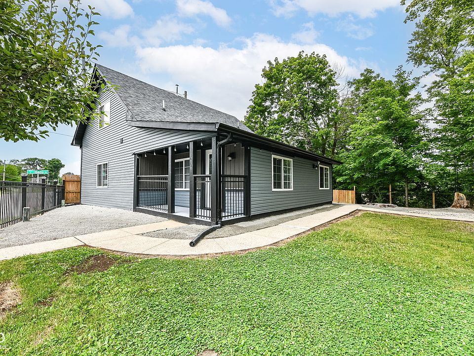 Welcome to your dream home on Brookville Road! Discover this stunning 4-bedroom, 3-bathroom residence, completely remodeled and move-in ready. Spanning nearly 2,000 sq. ft. across 1.5 stories, this beautiful home is nestled on an expansive .82-acre lot, providing unparalleled privacy and tranquility. You are greeted by a large covered porch that leads into the spacious, light-filled living room. Beyond that lies the updated kitchen, featuring a breakfast bar, stainless steel appliances, and wood block countertops. Also on the main level, you'll find 3 bedrooms and 2 full baths, offering convenience and accessibility. The master retreat is located on the second level, complete with two additional rooms and a full bath, providing a private, flexible, and relaxing space. Underneath sits a partial unfinished basement, offering additional storage and laundry options. Outside, the property is a nature lover's paradise, surrounded by mature trees and a charming small creek, creating a serene and picturesque setting. The large outbuilding includes two oversized garage bays and a spacious gravel parking area, making it ideal for a small business owner to operate from home-perfect for contractors, plumbers, HVAC professionals, and more. Situated on the far southeast side of Indianapolis, this home allows you to enjoy the peace and serenity of country living with the convenience of city life just a short drive away. This incredible home won't last long!