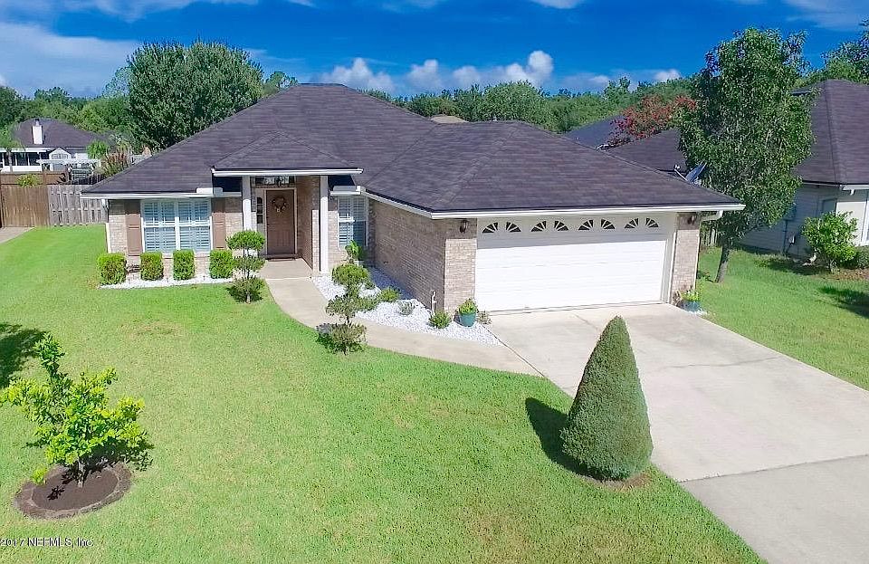 Pride of ownership is evident in this meticulously maintained brick-front home in a cozy Mandarin neighborhood. The functional floor plan allows for both formal and informal entertaining. The dining room can easily be converted to a 4th bedroom or office depending on your needs. No carpet anywhere in this home gives it the open and airy feel you'll be hard pressed to find in any other home of it's size. Nearly $8,000 in upgrades to the master bath including top of the line cabinetry and marble countertops as well as a beautifully tiled walk-in shower. Enjoy your large yard in the shade of your covered patio while eating your very own grapes right off the vine!