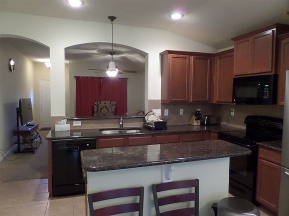 Just like new. Move in ready. Isolated master. Refrigerator, washer & dryer stay. Pretty kitchen and breakfast area. Granite. Large den. Dual vanities in master. Covered patio, big yard, stone veneer.