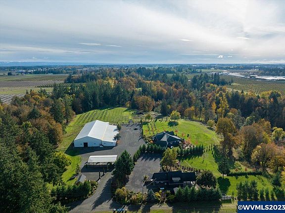 Peace, privacy and security on this idyllic farm set on 43 acres near Champoeg Park. Whether you are looking for a life of relaxation away from the city, seeking property for business venture, or interested in farming/equestrian pursuits, this property can fulfill your vision. Custom 2017 built 1 level home w/hrdwds, grmt kit, open flrpln. Flex space blt in 2019 w/state of the art kit. 72x156 indr arena w/barn(up to 17 stalls). Shop w/pwr. Water rights. Gorgeous trails/creek. Near I-5/wine country. Must see