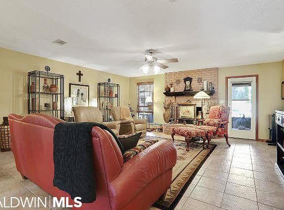 Priced below recent appraisal! (1.12 acres) with NO restrictions! Not only does this home offer a ton of space, but it also has a ton of extras! The living room is spacious and features a brick wood burning fireplace. There is also an extra space to the front of the house that can be used as an office or sitting area. The kitchen boasts beautiful custom distressed cabinets, granite counter-tops, travertine back-splash, an island that can provide additional seating, and a breakfast area with french doors leading out to the screened in patio. There is a huge 14x21 bonus room that can be made into whatever you desire! The backyard is great for entertaining or just relaxing and enjoying the well maintained landscaping. There is an attached covered triple carport, free standing two car garage, a separate storage shed that coveys, and 2 driveways for the home. All window treatments and light fixtures also convey. Park your boat or RV out back. HVAC is Geothermal which lowers power bills