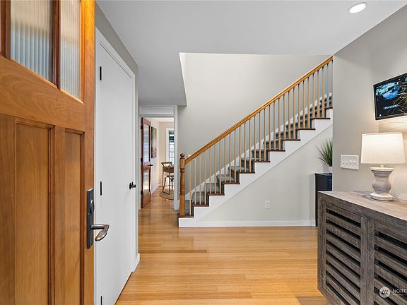 Beautiful & bright home featuring spacious layout ideal for entertaining & everyday living, boasting bamboo floors, chef's kitchen & versatile office space. Open living & dining area flows around your kitchen w/double ovens, custom cabinets & island eating bar where gourmet creations come to life. 3 bdrms, powder rm & full bth finish the main floor. The upstairs primary suite is a true sanctuary w/5-piece ensuite bath & expansive vistas thru Andersen windows. This residence seamlessly blends indoor & outdoor living. Landscaped yard w/spacious deck for alfresco dining & admire vibrant sunsets & starry nights. 2-car garage & circular driveway. Enjoy a prime location near parks, beaches, &schools, where nature's beauty is your daily companion.
