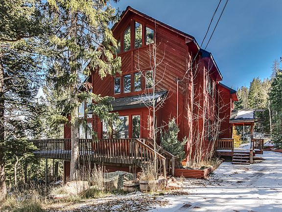 Welcome home to this beautiful mountain retreat! On Conifer Mountain, this updated home has 4500 square feet of living space. An open floor plan with a large family room and dining room greets you as you enter the front door. New carpet upstairs and wood floors on main level; granite countertops and marble backsplash in the kitchen that includes a gas fireplace. Large laundry room as well as a mudroom for your furry friends! Bonus room on the third level would be perfect as a large bedroom, play room or office. Wood burning fireplace in welcoming family room plus a pellet stove in the basement. Warmth abounds on snowy winter evenings! Large finished lower level has the opportunity for in-law suite. Situated on 5 acres, it includes a large barn. Enjoy picturesque mountain and city views from the large deck. A quick 10 minutes on well-maintained paved roads to 285 and shopping and an easy drive to Denver.