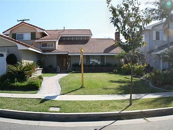 Beautiful Upgraded & Expanded Pool Home. 2 Extra Large Bedrooms Downstairs (Including Master) & 3 Spacious Bedrooms Up - All with Mirrored Closets. This Home Features Newer Central A/C & Heater, 5-Year-New Tile Roof, All Dual Pane Windows & French Doors, Custom Solid Wood Double Entry Doors & Sidelights w/Beveled Glass, Some Scraped Ceilings, Recessed Lighting, Tile Flooring w/Granite Inlay & Wood Laminate Flooring Throughout Downstairs. Remodeled Gourmet Kitchen Features Granite Countertops, Custom Cabinetry w/Lazy Susan, Glass Display Panels, & Wine Rack, Stainless Appliances, Gas Cooktop, Reach-Through to Family Rm, Breakfast Bar w/Pendant Lights, & Garden Window. All 3 Bathrooms are Upgraded with Newer Vanities, Granite Countertops, Tile Flooring, & Newer Fixtures. Downstairs Master has Double Mirrored Closets & French Doors to Backyard. Elegant Formal Living Rm with Marble Fireplace, Banquet-Size Formal Dining Room, & Giant Family Room. Backyard has Sparkling Pool that is Gated for Safety. Direct Access 2 Car Garage. Gorgeous Curb Appeal with Professional Landscaping, Paver Walkway, and Stacked Stone Raised Planters. Great Neighborhood Steps to Elementary School and Close to the Beach, Shopping, Restaurants, Theaters, Parks, Golf, and More!
