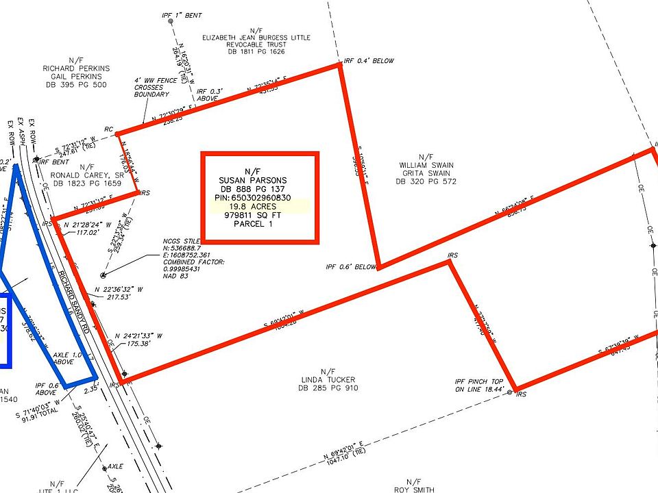 1 Acre+ on just outside of Oakboro. This listing is for the tract outlined in blue which is 1.38 acres. The tract across the street, outlined in red, is 19.8 acres and is also available as a separate purchase.