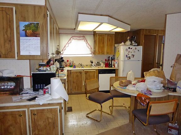 Double wide manufactured home in clean park. 1977 Fleetwood with 2 bedrooms and 2 bathrooms (one off the master bedroom). Open shelves between living and dining rooms. Free-standing wood stove in Great Room adds alternate, efficient heating. New roof in 2005. New windows in 2006. Vintage décor. Carport plus 2 storage sheds. Space rent includes water and sewer. Beautiful location at end of cul-de-sac with off-street parking.