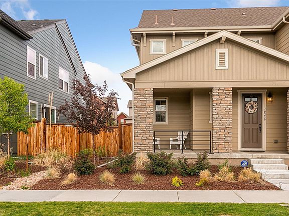 Gorgeous paired townhouse in the Bluffs Lake location of Stapleton! Like new, this home is in great shape with many upgrades. Step inside to beautiful hardwood flooring throughout the main floor and an open living space with tall ceiling height. The kitchen, which overlooks the dining area and living room, features both upgraded counter tops, cabinets and stainless steel appliances. In addition to a powder room, a door to the yard is also on the main level where you will find a Trex deck with seating and artificial turf. The upper level provides a spacious master suite and two additional bedrooms and a full bathroom. Additional features include a newly finished basement with recreation room, bedroom, walk-in closet, 3/4 bath and storage rooms holding a Radon mitigation system. Located close to the popular Stanley Market, restaurants, retail, the new retail market place now being developed right opposite E. 25th Dr and access to major roads that make this a great area to live and play!