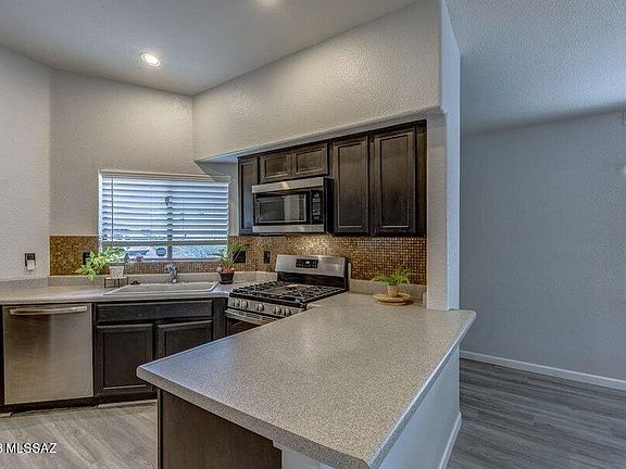 Come see this move in ready beautiful Rita Ranch home located in the coveted Vail school district. built in 2000, this 1143sf home is warm and inviting. With split floor plan this lovely home has 3 bedrooms, 2 bathrooms, 2 car garage and new wood laminate flooring. The open concept has spacious great room living. Kitchen has stainless steel appliances, eating bar, and beautiful back splash. The large backyard is an oasis with a covered patio for comfortable outdoor living.