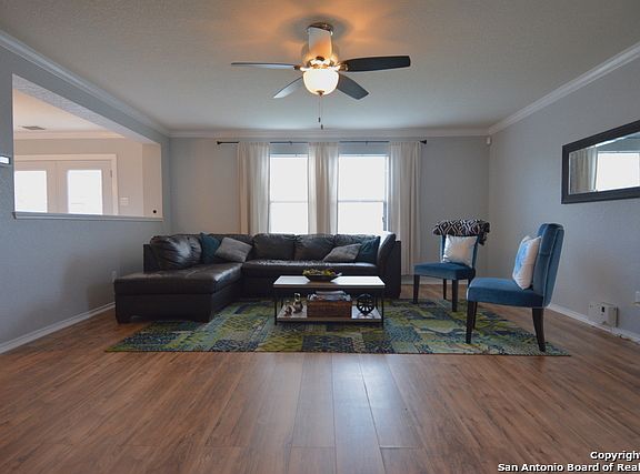 Beautifully maintained two story home in Mesa Creek. Located off 1604 in the awesome Northside ISD. An open floor plan and lots of windows is the perfect atmosphere for entertaining. French doors lead out to a beautifully landscaped backyard. The interior of the house has been freshly painted and crown molding added down stairs as well as laminate floors.