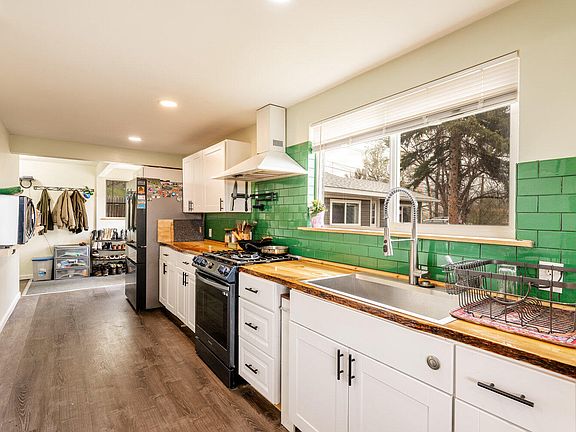 Nestled on nearly four expansive city lots, this unique property offers the rare opportunity for multi-generational living or separate guest accommodations. 1036 S. Main has 2 bedrooms and 2 bathrooms. Larger of the bedrooms offers a private ensuite. LVP flooring in living area, and real wood floors in bedrooms. Galley-style kitchen features gorgeous living edge countertops, stainless appliances, subway tile backsplash - even a pot filler! Ample storage and laundry space in basement. Step out on to the spacious deck and enjoy expansive views of the city. Fully fenced yard and a mature shade tree provide a private sanctuary for pets or outdoor gatherings. Greenhouse repurposed from old windows adds functionality and charm. 1024 S Main has been tastefully renovated to become a one bedroom, one bath studio home. Open-concept living with kitchen featuring live edge countertops and a gas range. Barn door leads to a cozy bedroom with private ensuite. Convenient in-home laundry. Alley access with dedicated parking and private deck make this the perfect compact, self-sufficient space.