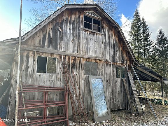Barn and house with 2 bedrooms, giant kitchen and living rooms. Mudroom, laundry area, one bath. Large covered porch.