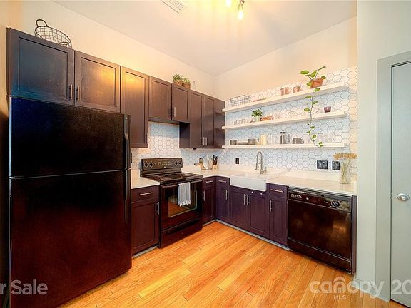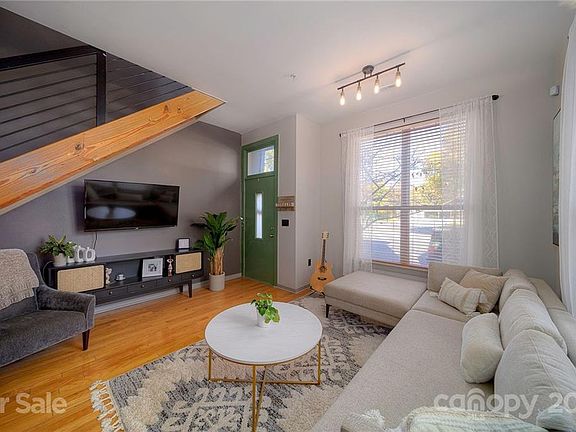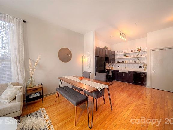 Updated two story loft condo in the heart of NoDa!! You don't want to miss this end unit home - Upgraded kitchen with gorgeous open shelving, farmhouse sink, Calcutta quartz countertops and refinished cabinets. Open floor plan gives ample space for entertaining and has plenty of natural light. Hardwoods throughout main level and in your oversized owners bedroom with ensuite bathroom and walk-in closet. Bathroom has new hexagon tile and quartz countertops have been added as well. Fridge, washer and dryer convey, plus HVAC replaced within last 3 years. Walk to everything NoDa has to offer and take the light rail to Uptown and South End - everything you need! Welcome Home!