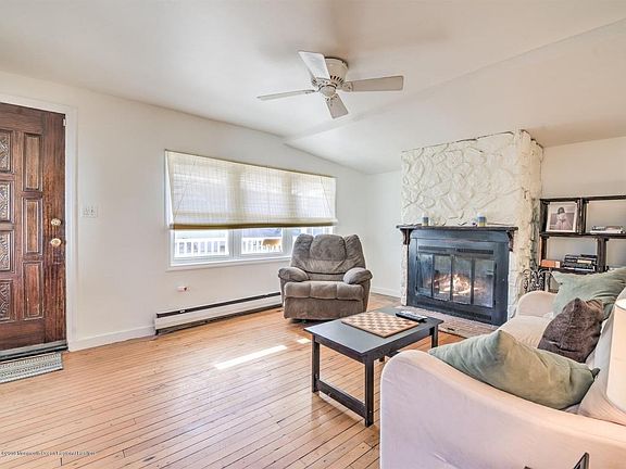 This adorable 2 Bedroom, 1 Bath home is located 1/2 Mile to Belmar Beaches, close to Shark River and walking distance to shopping. Features Include: Hardwood Flooring, Newer Eat In Kitchen With Breakfast Bar. Living Room With Wood burning Fireplace.Baseboard Heat, Newer Furnace,Partially Finished Basement with TWO rooms that can be used as office/Bedrooms. Double Wide Driveway. Beautiful Front Porch and professional Landscaping. PERFECT for starter home, single living or secondary beach house.