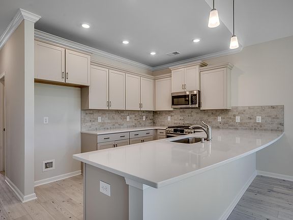 The Highstead is a two-story floor plan with three bedrooms and three bathrooms. Luxury vinyl plank flooring extends throughout the main living areas and lead you to a guest bedroom in the front that could also function as a home office. The kitchen overlooks the eat-in space and includes a walk-in pantry. Quartz countertops and white subway-style backsplash compliment the white cabinets, tying the look together into a delightful entertaining and functional space. The laundry room is adjacent to the kitchen and has additional cabinetry for storage and organization. The great room includes a fireplace and has twelve-foot vaulted ceilings that highlight this open-floor plan beautifully. A rear covered patio can be accessed through the eat-in area and has an additional uncovered extension, perfect for entertaining. This homesite backs up to a beautiful tree line for added privacy, too! The primary suite is off the gathering area and also boasts a twelve-foot vaulted ceiling. It also features a walk-in closet, five-foot tiled shower with glass enclosure and twelve-foot vaulted ceiling. Upstairs you’ll find a guest suite with private bath and walk-in closet. The garage is one-car plus storage or space for a golf cart. Merrill Villas is in the heart of Carolina Forest offering convenient access to amazing shops, restaurants, championship golf courses, Myrtle Beach International Airport, and is less than five miles to the beach! Photos are of a completed home for representation only. Estimated completion late April/early May.