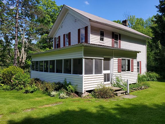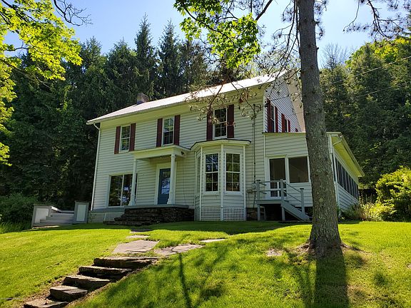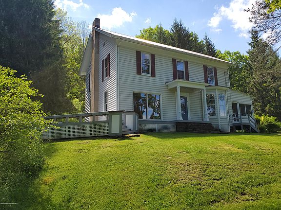 Looking for peace and quiet? This is the perfect retreat. 98 acres with approximately 55 acres of woods. 1 acre spring fed stocked pond and a smaller pond ideal for horses or cattle. The Hop Bottom Creek meanders through the property. Stately 2 story, center hallway farmhouse with a storybook setting.Walnut staircase. LR with oak flooring and Franklin Stove. Sliders to deck. Formal DR with bay window breakfast nook. The ceilings in the front rooms are 11'4''. There is also a kit., mudroom and a FB. The second floor has 4 bedrooms and a FB. Random width spruce floors in all BDR'S. 2 zone OHWBB heat. Screened in side porch. 4,000.sf+- bank barn. Long road frontage on Ainey Road and SR 167. Low Clean and Green taxes. The O,G+M rights have been previously transferred and are not available.