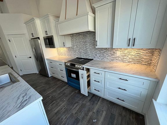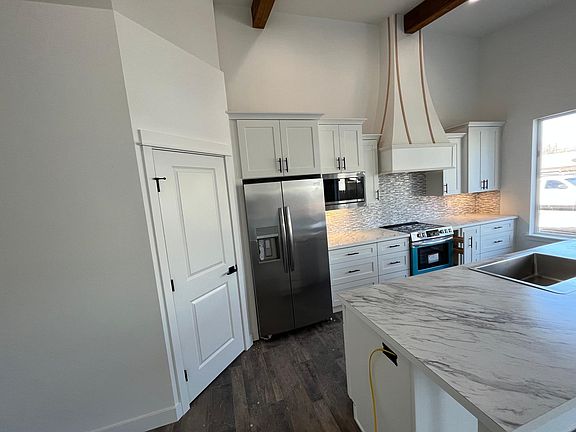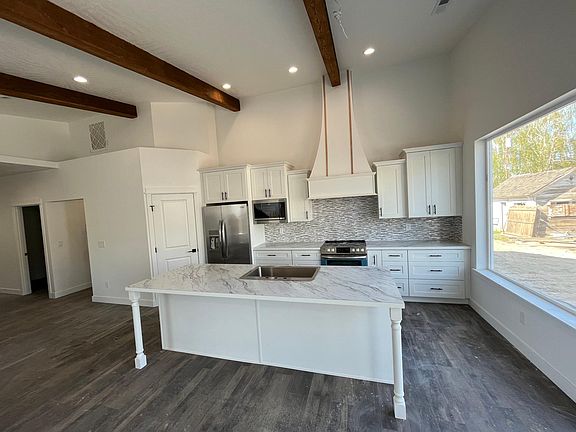Brand new home build in 2023 . Tall 13' ceilings in the GR and kitchen. The great room features custom ceiling beams made from real rough sawn Douglas fir wood; moving into the kitchen there is a large 9' island with all lower cabinets having roll out drawer to save your back. The custom range hood and stacked cabinets give the house a truly custom look. Moving on to the master bedroom there is an oversized double sink vanity, a shower with dual shower heads, and a large oversized closet with a double rod and shelf; 2nd and 3rd bedrooms are oversized with plenty of storage. As you walk in to the back year one can't help to notice to privacy while sitting on the over sized patio. The home comes with a 12' x 24' single car garage. Renter pays all utilities and mows the lawn. No Smoking.