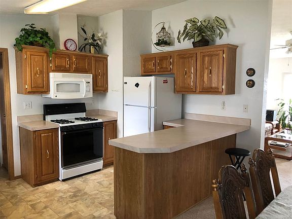 Split Bedroom floor plan with full bathrooms & sky lights on both sides. Cathedral ceilings. Large pantry in kitchen. Water purification system, spacious dining room, 3 large bedrooms. Master has walk-in closet. Ceiling fans throughout, insulated garage door, garden shed for lots of storage, newer roof. All appliances stay including washer & dryer. $582 Lot rent includes water, sewer, trash and community pool. Double wide. Sellers are relocating and motivated to sell.