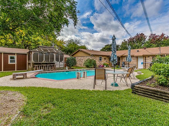3 bedroom 2 bath with a sparkling diving pool in HEB ISD! Recently updated: energy efficient windows, wood floors, paint, fixtures and a 19 seer AC unit. 2 well built spacious storage buildings.