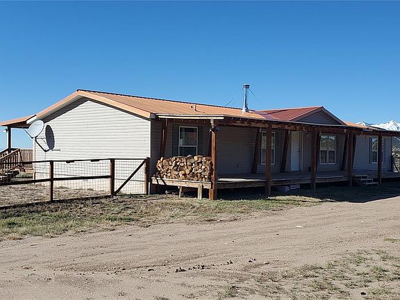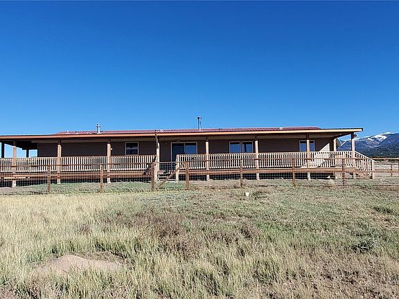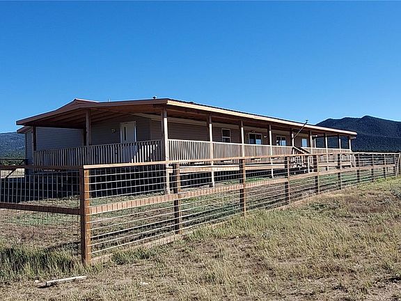 Open and spacious manufactured modular home, off grid on 5 acres. 3 bed 2 full bath (1904 sq ft., on concrete stem wall). Built in 2001, with full length covered porch and dog run as well as entire property! Home is purged and rests on 5 fenced, cleared acres! Property offers fresh water well(380ft deep),on septic, with 1,000 gallon buried propane tank on concrete stemwall. The home is fully operational on independent solar system(Includes panels, batteries, inverter, generator etc). The property includes 2 fully closed in connected storage sheds for fantastic solar storage and protection. This is truly a retreat in the Sangre de Cristo Ranches that offers peace and quiet! You can enjoy cozy winters by the wood stove or wonderful cool summers on the deck! Only a short drive to the Great Sand Dunes National Monument! Live independently off grid, never pay another electric bill!