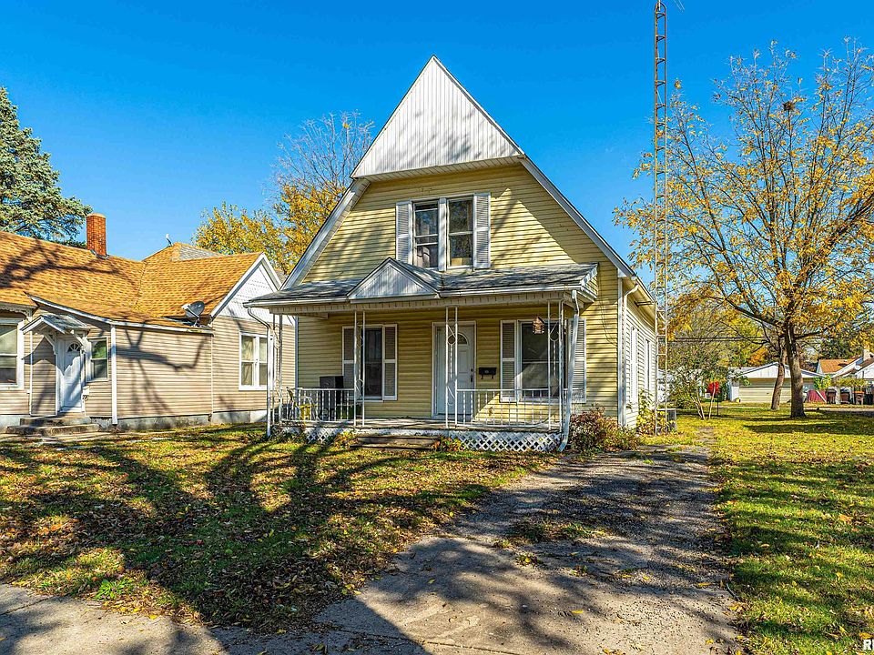 Quite the surprise is this neat two bedroom, two full bath two story vinyl sided home situated just steps from the historic downtown district! Main floor of home features an inviting living/dining concept with great floor space as well as laminate flooring, updated tiled kitchen, comfortably sized bedroom, full tiled bath, and a large rear laundry/mudroom area. Upstairs, you will find a wonderfully large private master suite host to soaring cathedral ceilings, amazing floor space, and a private full tiled bath. Property also features an unfinished basement, covered front as well as rear porch areas, front off-street parking, 200 AMP electrical, and most replacement windows. Own this residential dwelling for less than rent! Inspections welcome at expense of buyer(s), but property being sold as presented with no repairs at expense of seller.