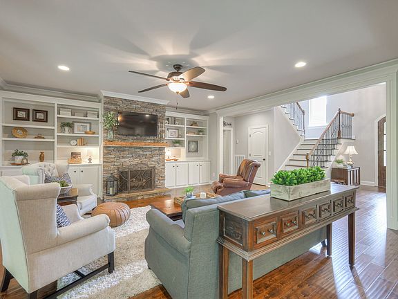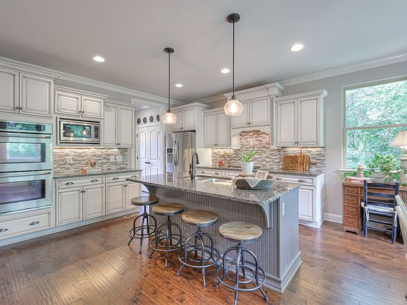 This residence exudes sophistication & warmth, thanks to its high ceilings & large windows that flood the home with natural light. The well-appointed eat-in kitchen is a highlight, featuring a substantial island, sleek stainless steel appliances, & a butler's pantry that facilitates effortless entertaining in the separate dining room. The living room, with its built-in bookcases & stone gas fireplace, is a perfect blend of comfort & style. From here, step out onto the screened-in deck, a delightful space for entertaining or enjoying a peaceful evening. The primary bed on the first floor offers a serene escape with its tray ceiling, expansive walk-in closet, & a luxurious bath that promises relaxation. Upstairs, find Beds 2 & 3 which each have private full baths, while Beds 4 & 5 share a Jack-&-Jill bath. Additional bonus room offers flexible space. Nestled on a semi-private lot with mature trees, this home offers a serene retreat while being close to shopping & restaurants.
