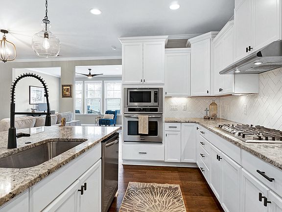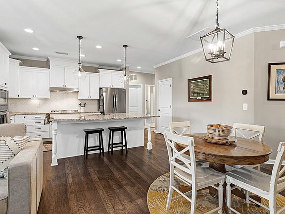 Stunning one level townhome with upscale finishes throughout! Gorgeous chef's kitchen with granite counters, upgraded cabinets with pull-out drawers, stainless appliances, gas stove-top, upgraded pantry. Hardwoods in main areas and new LVP in bedrooms and primary closet. New lighting thru-out home, remodeled primary bath with ship-lap accent wall, new plumbing fixtures and custom designed walk-in closet. Bright sunroom overlooking large fenced yard. New custom paint thru-out. New storage added to garage. Enjoy resort style amenities with pools, courts, fitness, clubhouse and events! Creekside at Bethpage is one of the Triangle's top selling 55+ communities! Located in Brier Creek with easy access to shopping, services, I-40 and I-540.