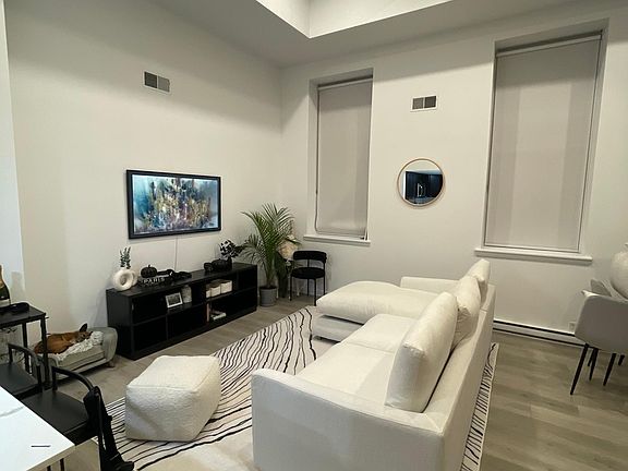 Come see this renovated luxury apartment with lofted bedroom. Amenities include stainless steel appliances, granite countertops, breakfast bar, hardwood floors, custom lights, & Nest thermostats. This unit features high ceilings & a spiral staircase to a great loft/bedroom space. The building has an elevator and parking is available for $300 a month. Pets are okay with $350 fee & $30/mo.Close to bus & Ferry to NYC, parks, shops, restaurants & more. Flexible security deposit options.