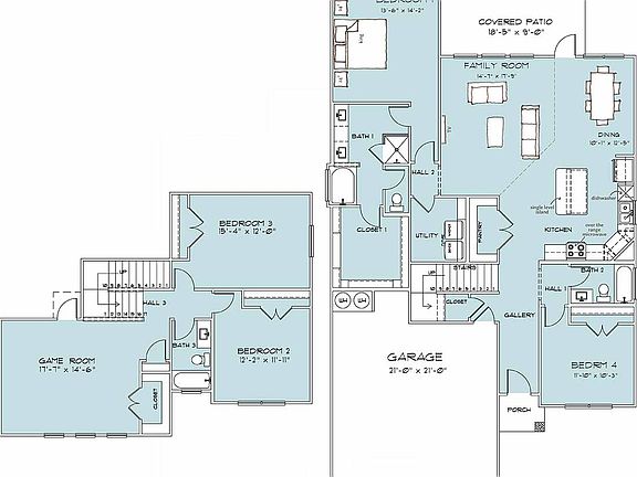 This home has something for everyone in the family. For the kids, an oversized game room, 2 bedrooms and a full bath upstairs. For the homeowners, a separate shower and garden tub in the primary suite bath. And for the cook in the family, the kitchen features 3CM granite counter tops, a large double door pantry, and a single level island.