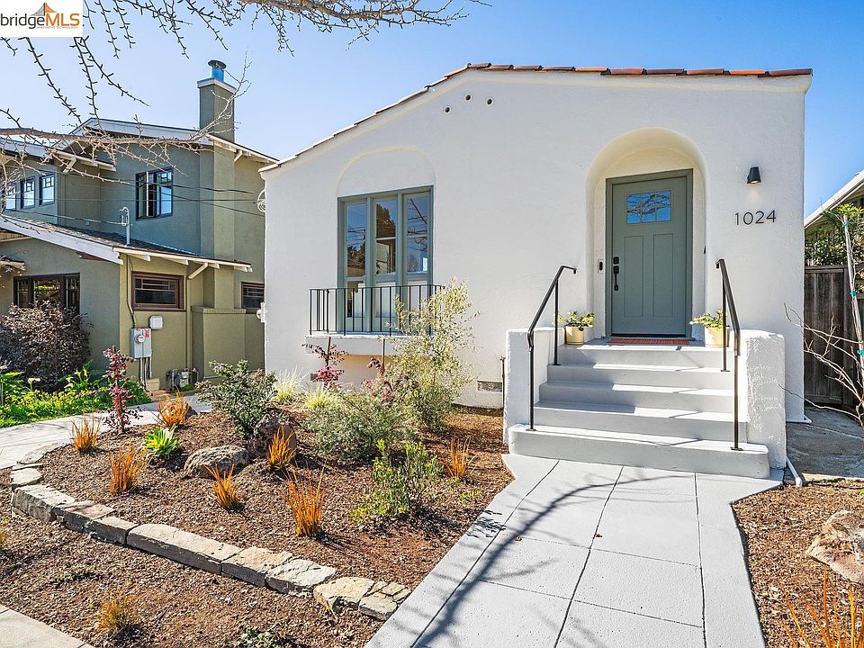 A recently restored 1920s gem with period character, 1024 Curtis Street sits in one of the most accessible areas of Albany: near Solano Avenue, both the Northbrae and Westbrae neighborhoods, and convenient to BART. The home comprises two bedrooms and one full bathroom, with an updated flow to create a bright, open, and modern living space. Built in 1925, the home charms you throughout, with an arched entry, built-in buffet cabinet, stone fireplace, and clay tile roof line. The spacious living room provides natural light through tall, well-placed windows. The upgraded eat-in kitchen is bookended by a formal dining room with an inviting arched connection and a newly-built redwood deck linking the yard to the home. The layout is perfect for entertaining or enjoying meals year-round. The bedrooms lay on either side of a remodeled bathroom with a shower over tub and a built-in shower bench. The rear and front yards feature a low-water, Mediterranean pallet of texture and color, and thoughtfully designed space to enjoy the outdoors. The recently renovated garage sits at the end of a three-deep driveway and sparkles with a new concrete floor, finished walls, updated lighting, and vaulted ceilings – perfect for storing a car or other uses.